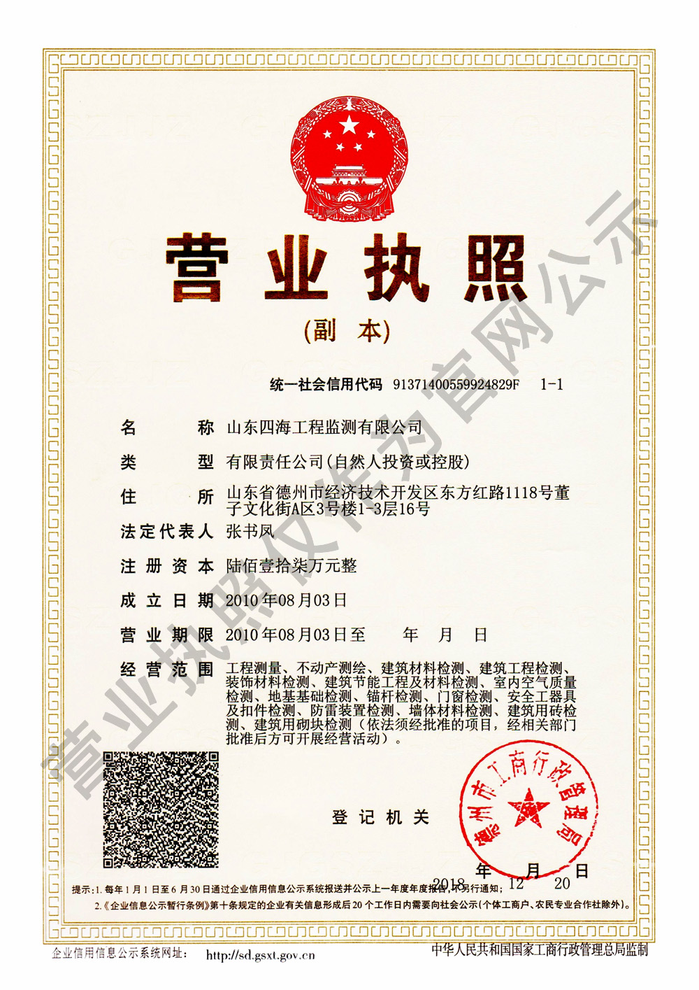 山東四海工程監(jiān)測有限公司成立于2010年8月,注冊資金1577萬元,是德州市較早成立的建筑工程專業(yè)檢驗(yàn)檢測機(jī)構(gòu),有著豐富的檢驗(yàn)檢測經(jīng)驗(yàn)和較高專業(yè)水平。業(yè)務(wù)范圍涵蓋建筑工程檢測、建筑材料檢測、裝飾材料檢測、建筑節(jié)能工程及材料檢測、室內(nèi)環(huán)境質(zhì)量檢測、防雷裝置檢測、地基基礎(chǔ)工程檢測等,同時(shí)具有工程測量、不動(dòng)產(chǎn)測繪資質(zhì),其中工程測量中的基坑監(jiān)測采用的是“中國四海自然災(zāi)害監(jiān)控系統(tǒng)設(shè)備”,是由北京楊人光地質(zhì)災(zāi)害測控技術(shù)有限公司自主研發(fā)并授權(quán)山東四海工程監(jiān)測有限公司為全省獨(dú)家戰(zhàn)略合作。